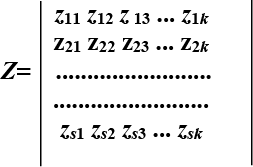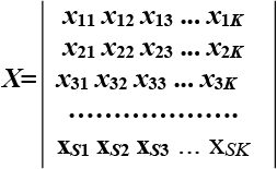 Після визначення об’єктів та відбору показників формується вихідна матриця показників X. У цій матриці стовпці представляють досліджувані об’єкти nk (k=1, 2,…, K), а рядки – показники xs (s=1, 2,…, S), що характеризують досліджувані об’єкти.