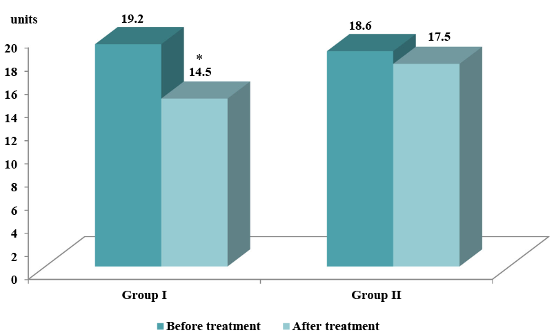 Analysis of the dynamics of the insulin level and insulin resistance on the background of treatment revealed significant differences in these indicators in patients of Group I and II (Fig. 1, 2). In the group of patients UDCA was included in the composition of complex therapy, the median insulin level and HOMA index decreased by 19.4% (p=0.001) and 22.9% (p=0.002), respectively, in the standard treatment group dynamics of these indicator were not significantly different. The inclusion of UDCA in the complex therapy contributed to a more pronounced decrease in insulin level and IR in men with androgen deficiency (Fig. 1, 2). There were no significant side effects with the inclusion of UDCA in the standard therapy in the dynamics of observation, and there was no need to change the daily dose or discontinue treatment. Thus, the results of the study indicate the effectiveness and safety of UDCA in complex treatment in men with CAD with concomitant prostate cancer.